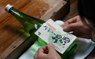 属于出厂前的最终调整阶段。即使原料相同、工序相同,由于酒缸不同酒的味道也会有微妙差异,因此,有经验的酿酒师会进行测试,调整酒的品质。在临装瓶前,会进行二次加热,装瓶后粘贴标签。经过上述工序,船尾泷就可以送到顾客手中了。